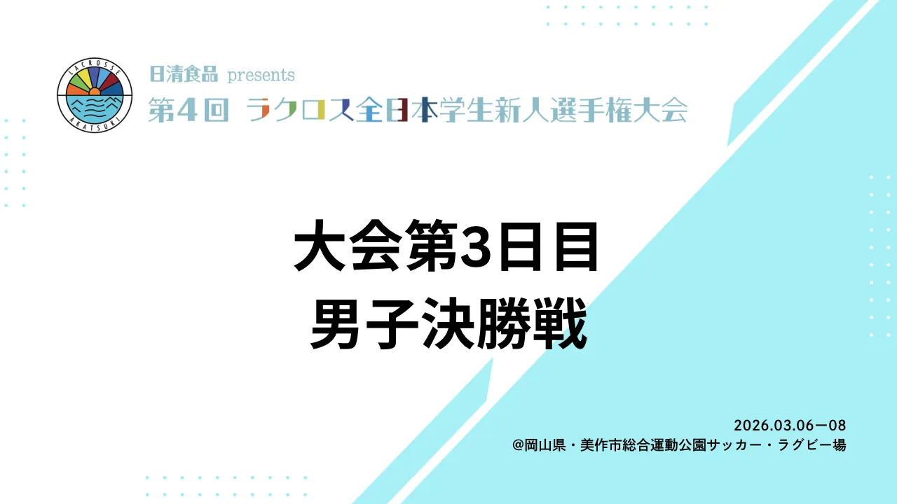 2026年3月8日 | 日清食品presents 第4回ラクロス全日本学生新人選手権大会 【Day3】決勝(男子)