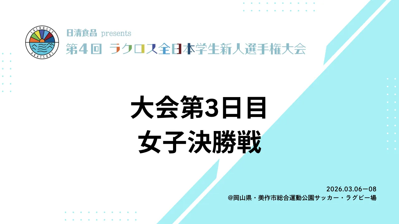 2026年3月8日 | 日清食品presents 第4回ラクロス全日本学生新人選手権大会 【Day3】決勝(女子)