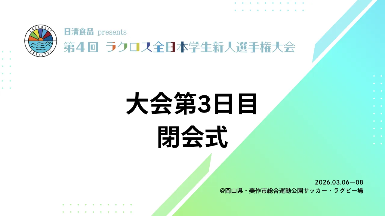 2026年3月8日 | 日清食品presents 第4回ラクロス全日本学生新人選手権大会 【Day3】閉会式